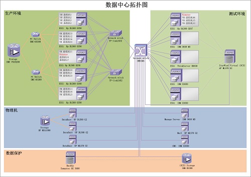 【案例】某政府信息網(wǎng)絡(luò )及數據安全升級改造項目該項目包括以下內容:購買(mǎi)服務(wù)器、磁盤(pán)陣列等設備解決現有設備老化等問(wèn)題;改變現有的NAS數據存儲方式為SAN存儲,集中對數據進(jìn)行管理;引進(jìn)一套數據保護軟件對現有數據進(jìn)行有效管理與保護;采用服務(wù)器虛擬化方式解決現有設備浪費的問(wèn)題,提高現有業(yè)務(wù)系統運行的穩定性;購置部分網(wǎng)絡(luò )安全設備,解決目前棘手的網(wǎng)絡(luò )安全問(wèn)題。 1、新增服務(wù)器、交換機等設備。服務(wù)器5臺、磁盤(pán)陣列2臺、數據安全保護軟件1套、服務(wù)器虛擬化軟件1套、光纖交換機2臺、數字KVM切換器1臺、交換機8臺。 2、采用SAN將業(yè)務(wù)數據集中存放在磁盤(pán)陣列中。 將大部分應用數據遷移到新購置的磁盤(pán)陣列中。除了5臺特殊應用服務(wù)器外,其他應用數據皆集中存放在磁盤(pán)陣列中。5臺新購置的服務(wù)器只存有VMware ESXi虛擬化環(huán)境數據。5臺新服務(wù)器通過(guò)2臺光纖交換機與磁盤(pán)陣列連接,實(shí)現了雙冗余通道,確保了數據讀寫(xiě)的穩定性。 3、服務(wù)器虛擬化。 新購置的5臺服務(wù)器全部投入到虛擬化環(huán)境中,作為一個(gè)資源池。在此資源池中虛擬了15臺虛擬機,運行vCenter、數據交換服務(wù)、DNS服務(wù)、GIS服務(wù)、OA服務(wù)、在線(xiàn)辦事服務(wù)、RTX服務(wù)、網(wǎng)絡(luò )日志服務(wù)、視頻點(diǎn)播服務(wù)、網(wǎng)站互動(dòng)交流應用服務(wù)、建設網(wǎng)服務(wù)、視頻處理服務(wù)、系統辦公服務(wù)、數據遷移服務(wù)以及測試機等。 原服務(wù)器中數據已經(jīng)遷移完成的服務(wù)器,目前部分已經(jīng)停機,部分性能較好的服務(wù)器,已經(jīng)重新建立了一套測試虛擬平臺,并將一臺大容量硬盤(pán)的服務(wù)器,虛擬成iSCSI存儲,共虛擬機共享使用。該測試平臺,目前只建了幾臺測試虛擬機,用于軟件開(kāi)發(fā)調試、新功能測試以及學(xué)習研究使用。 4、數據保護系統。 數據備份采用Symantec BE3600軟硬件一體化設備,制定了詳細的數據備份策略,按照制定的計劃在自動(dòng)備份。 5、加強網(wǎng)絡(luò )安全管理措施。 對所有主機進(jìn)行了1次安全掃描,發(fā)布了安全報告。對所有網(wǎng)站進(jìn)行了24小時(shí)運行監控,發(fā)布了運行監測報告。對所有網(wǎng)站進(jìn)行了安全掃描,發(fā)布了安全報告。 上線(xiàn)了1臺web應用防火墻,對網(wǎng)站服務(wù)器進(jìn)行安全防護;上線(xiàn)了1臺防火墻,對各直屬單位與服務(wù)器之間進(jìn)行了安全防護。